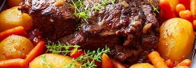 Soczysta pieczeń z wołowiny z ziemniakami i mini marchewką