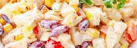 Z ananasem, porem, kukurydzą, papryką, serem żółtym i czerwoną fasolką
