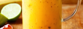 Z mango, marakui i banana, z sokiem pomarańczowym i nasionami chia