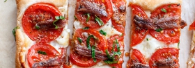 Tarta z serem kozim, pomidorami i sardelami (anchois)
