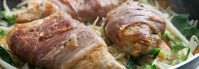 Filety z kurczaka w szynce parmeńskiej na mieszance smażonych warzyw