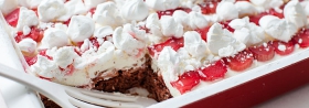 Na kakaowym biszkopcie, z kremem jogurtowym i pieczonym rabarbarem.