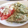 Piersi kurczaka obsmażane w delikatnej panierce z mąki, zatopione w pysznym, kremowym sosie z bobem, zielonym pesto i tymiankiem.