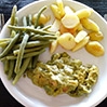 Filety z kurczaka w kremowym sosie z zielonego pesto, z bobem i tymiankiem