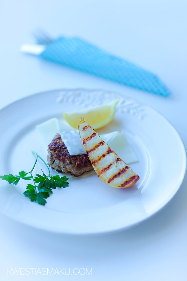 - Kotlety zawinąć w plasterki sera koziego i ułożyć je na talerzach. Podawać np. z grillowaną gruszką, skrapiając sokiem z cytryny.