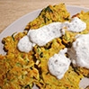 - Cukinię i cebulę oraz posiekaną zieleninę dodać do ciasta i wymieszać łyżką.