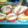 - 24 czereśniowiśni, bez pestek (lub wiśni, czereśni, malin, jeżyn, małych kawałków truskawek), po 2 do jednej babeczki