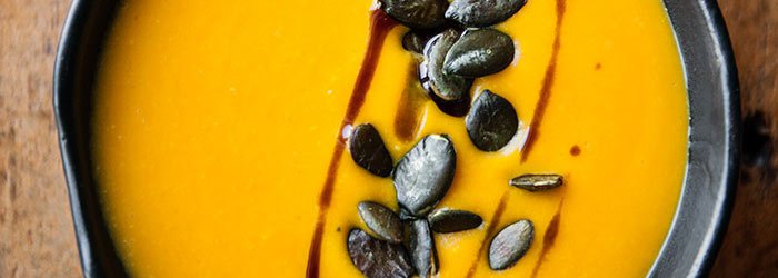 - Na suchej patelni uprażyć pestki dyni, wymieszać z olejem dyniowym lub oliwą i użyć do dekoracji zupy.