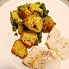 - Pieczone ziemniaki: Piekarnik nagrzać do 220 stopni. Ziemniaki wyczyścić szczoteczką, dokładnie opłukać, małe ziemniaki przekroić na połówki, większe pokroić na 3 - 4 części. Oprószyć solą, pieprzem, świeżym rozmarynem i tymiankiem, wysmarować roztopionym masłem. Ułożyć na blasze do pieczenia i wstawić do piekarnika. Piec przez 20 minut, następnie nastawić grill w piekarniku (lub zwiększyć temperaturę do 240 stopni) i piec jeszcze przez około 10 minut, aż ziemniaki ładnie się zrumienią.