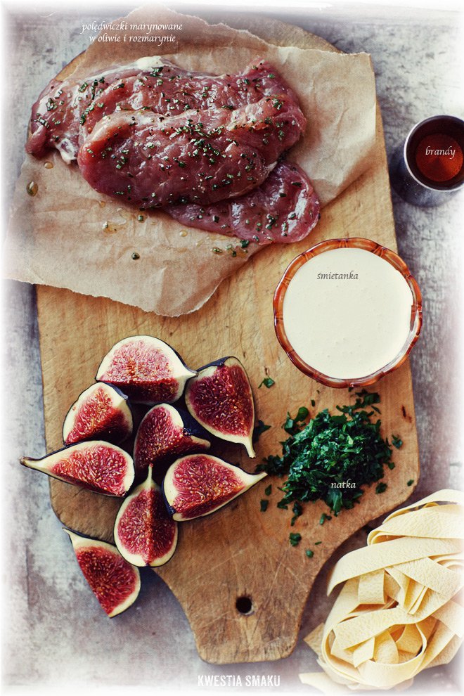 Błyskawiczne do przygotowania danie z jednej patelni. Zrobicie je w mniej niż 15 minut, czyli w czasie gotowania makaronu. Polędwiczki smaruję rozmarynem i chwilę podsmażam na patelni, dodaję figi i chwilę gotuję w sosie ze śmietanki. Posypuję natką pietruszki i podaję z gniazdkiem makaronu tagliatelle. Podczas gotowania sosu jeden kawałek figi rozgniatam widelcem aby wzbogacić smakowo sos i dodatkowo go zagęścić, dodaję też kieliszek brandy aby nadać daniu bardziej wyszukanego smaku.