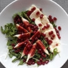 - Na talerzu ułożyć miętę z rukolą, ułożyć figi i pomarańcze. Przykryć plasterkami zgrillowanego sera i polać dressingiem z ziarenkami granatu.