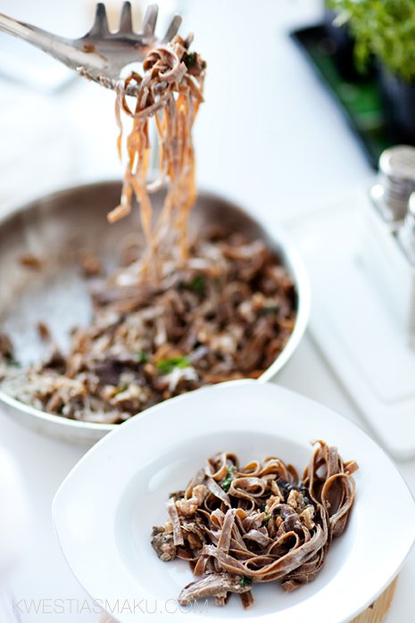 Ze wszystkich Makaronów z grzybami ten chyba jest najszybszy. Nie wymaga długiego namaczania grzybów, robi się go naprawdę bardzo prosto. Nie jest ciężki, z małą ilością śmietanki i masła, które to można jeszcze ograniczyć. Do dania wykorzystałam makaron o smaku grzybów, cieniutki i delikatny.