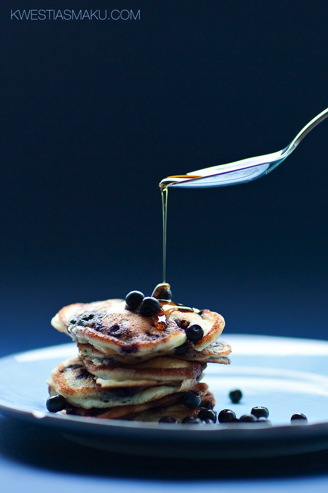 Czyli placki na maślance z jagodami. Na deser, na słodko, z syropem klonowym lub - jak ktoś lubi - ze śmietanką, cukrem czy serkiem homogenizowanym.
