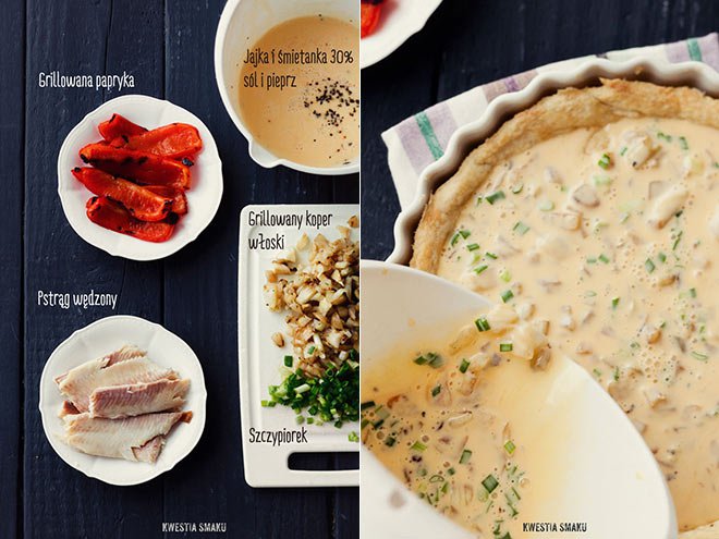 admin Tarta z wędzonym pstrągiem, grillowaną papryką i koprem włoskim