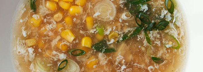 Delikatna zupa z dodatkiem piersi kurczaka, kukurydzy, białka jaja i dymki (lub koperku). Mam słabość do takich zup na bazie wywaru drobiowego, zagęszczanych mąką ziemniaczaną. Pamiętam podobne z restauracji chińskich w Londynie. Tam podawane są z dodatkiem mięsa kraba. Najpierw gotuje się wywar drobiowy doprawiony imbirem i czosnkiem, później dodaje kukurydzę, mięso i na koniec roztrzepane białko jaja. Ja postanowiłam ugotować lekki bulion z dodatkiem piersi kurczaka, którą po ugotowaniu pokroiłam i dodałam do zupy. Mocną stroną tej zupy powinien być dobry bulion, ja dodałam do niego trochę sosu sojowego, dla smaku i koloru. Podobną zupę możecie ugotować z innego drobiowego, gotowego bulionu (nawet rosołu) i zamiast piersi kurczaka dodać do niego mięso drobiowe ugotowane w rosole.