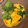 - Dodać szpinak (można dużo) i wymieszać. Podgrzewać jeszcze przez chwilkę aby grubszy i większy szpinak zmiękł. Można też włożyć świeży szpinak na talerz i zalać gorącą potrawą, ale pierwsza opcja wydaje się lepsza.