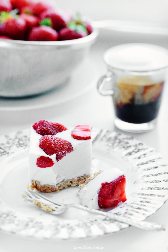 czyli sernik na zimno z masą kokosową i truskawkami